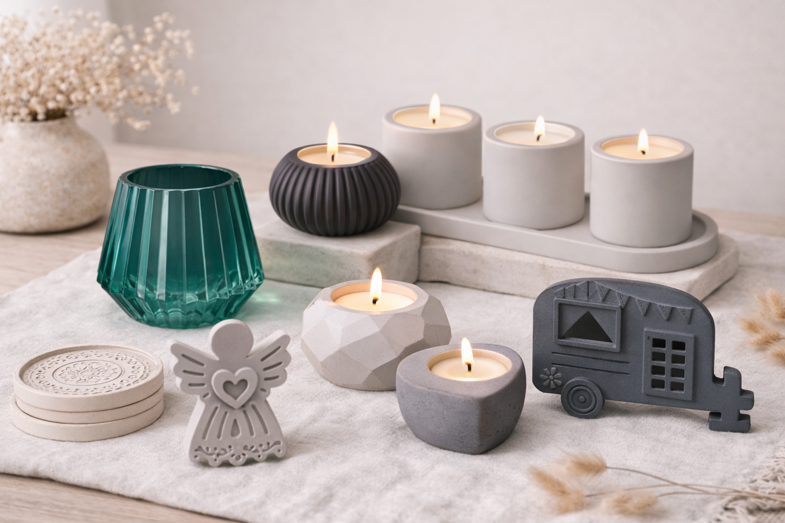 Sculptural pieces that anchor a room — from delicate moon forms to bold botanical casts. Each one made by hand, no two exactly alike.